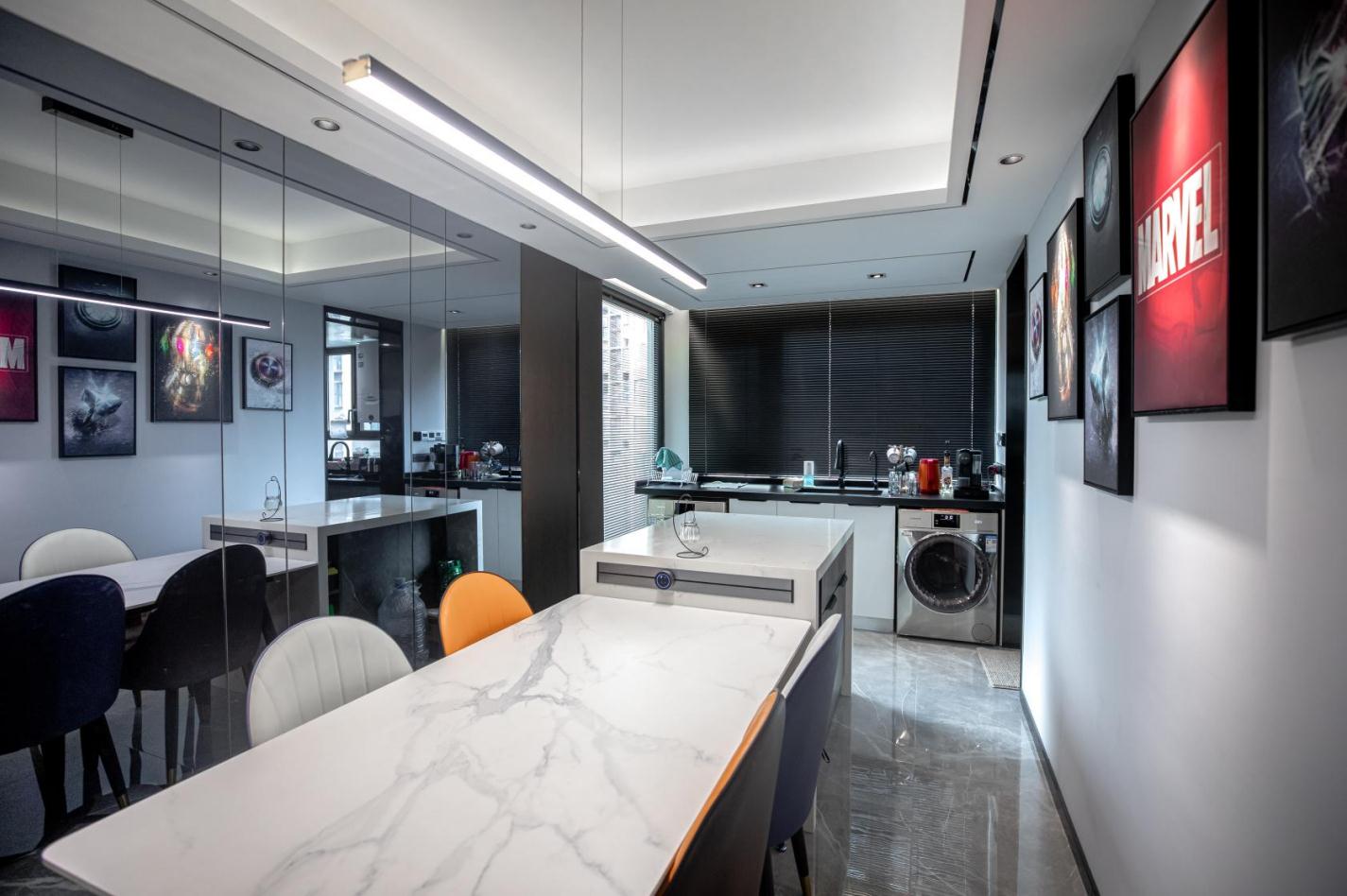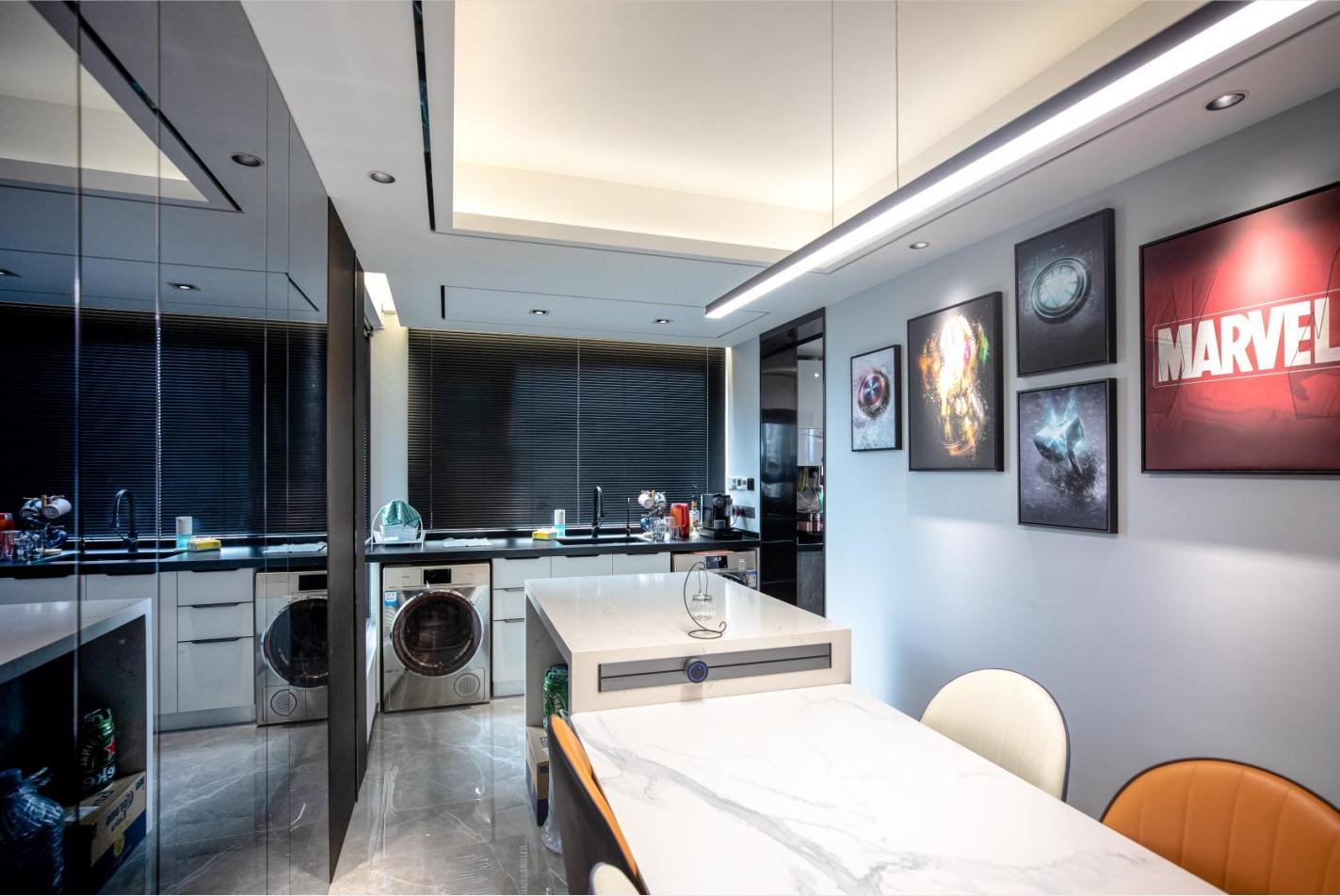 將“簡而不俗”、“簡奢有度”的設計理念融入空間、融入生活。 將金屬元素與黑白灰的主色調相互融合、和諧共存,剛柔并濟形成空間獨有的氣質