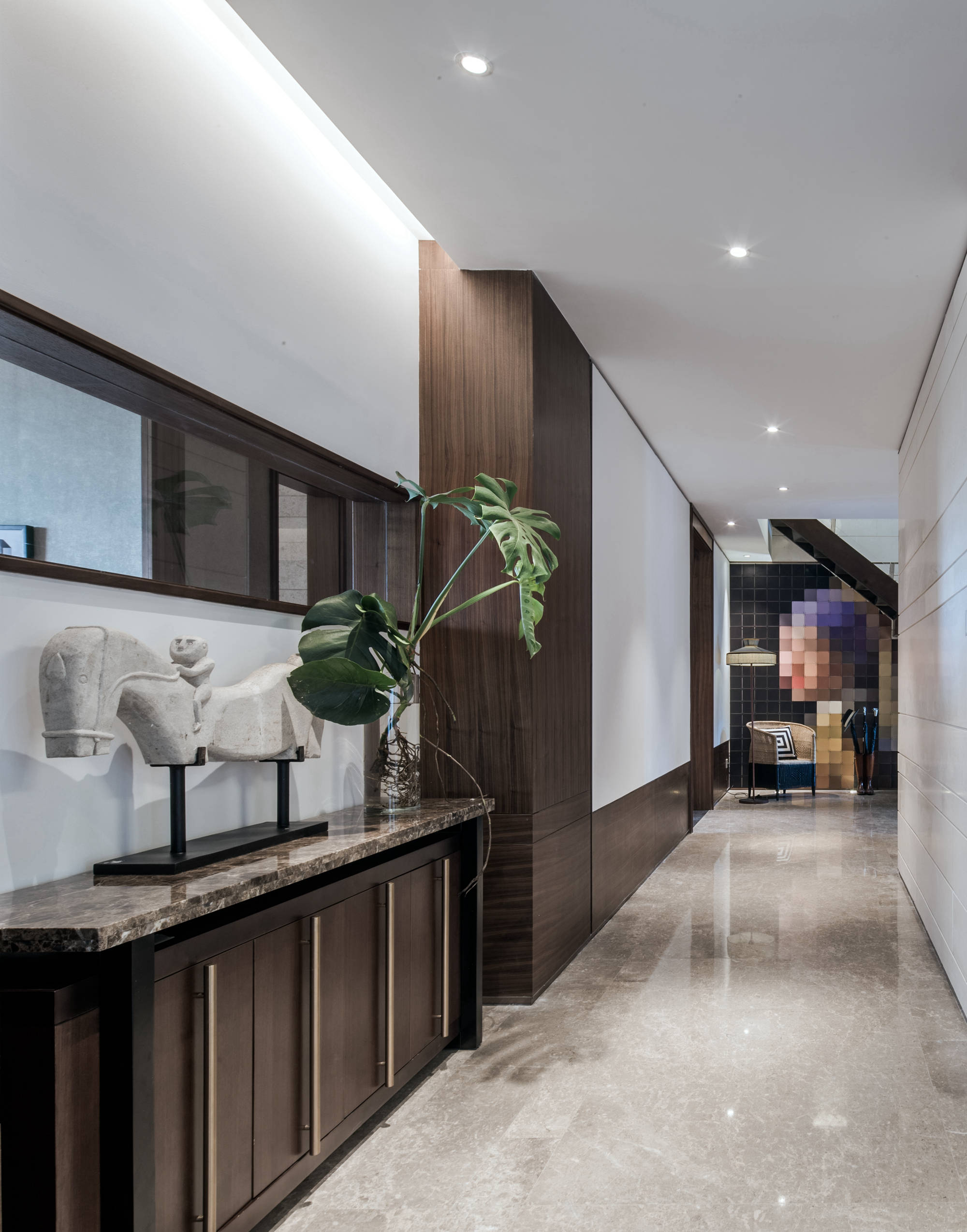 用業主偏愛的色系,與展現個性的材質、線條,更考量這對燕爾夫妻的年紀,增添新穎元素;透過空間情境的調配,重現生活態度,演繹了永不褪色的「原墅」