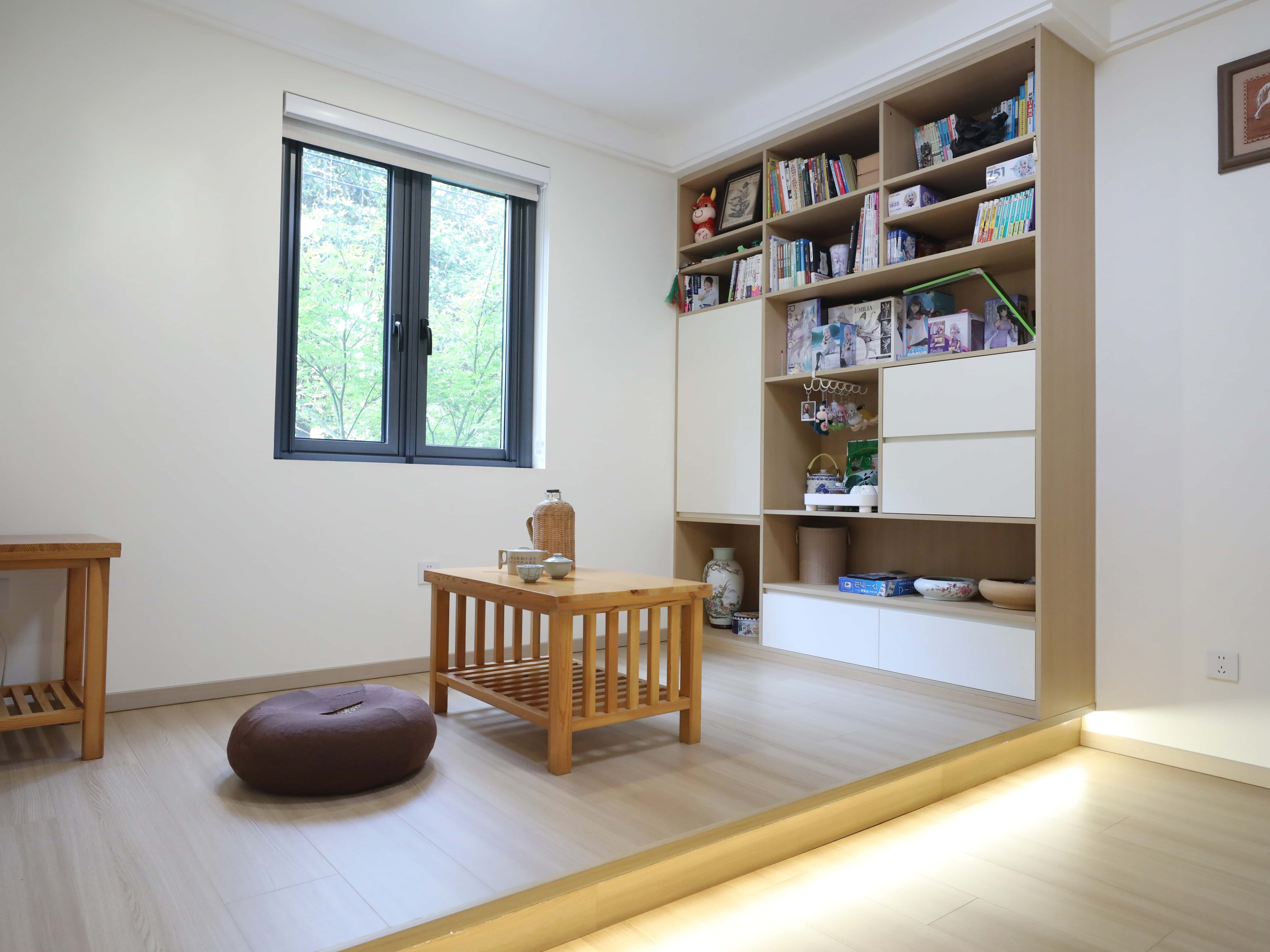 老房新生,不僅是風格的轉變,更是對居住者生活方式的深度回應。洪先生一家三口各有所愛:爸爸收藏紅酒,媽媽鐘情茶具,兒子熱愛二次元,一家人在這里住了二十余年,屋內布局早已不能滿足他們的日常生活和情感需求。面對琳瑯滿目的藏品與日常雜物,設計師謝倩楠以溫馨的原木風為基調,通過動線重組與全屋定制收納系統,打造一個能輕松打理的家