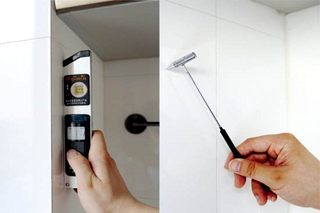 鋪設(shè)瓷磚,粉刷插座接線盒,衛(wèi)生間做防水測試....