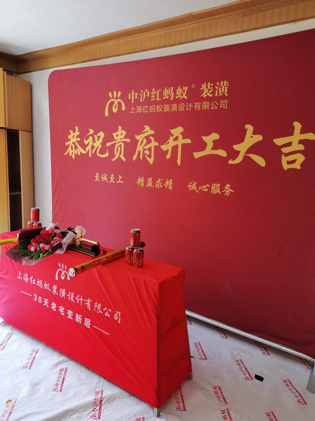 在這開工大吉的日子里,我們中滬紅螞蟻裝潢的工程部相關(guān)人員、業(yè)主相聚一起,一起慶祝開工慶典,感謝我們的業(yè)主對中滬紅螞蟻裝潢的支持與信任,相信接下來的工程會順順利利,交給我們業(yè)主一個滿意的家。1、選良辰吉日吉時,查黃歷。2、主要在客廳完成祭祀儀式。3、現(xiàn)場做施工保護(hù),文明施工從今開始。